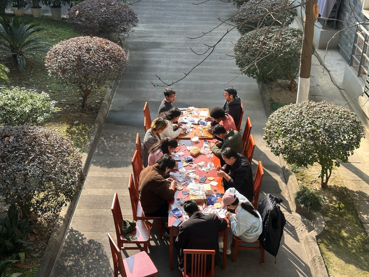 来自印度的Erikson、尼泊尔的Redima、苏丹的Khaled和坦桑尼亚的Abdallah等同学在体验后分享道:“这需要灵巧的双手和极大的耐心,看着不同颜色在指尖融合,逐渐呈现出的画面非常美丽。”“虽然制作过程缓慢,但我很享受这种专注与宁静。”“这是我第一次尝试掐丝珐琅,我想把这份作品留作在中国庆祝新年的珍贵回忆。”