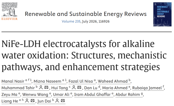 文章信息:NiFe-LDH electrocatalysts for alkaline water oxidation: Structures, mechanistic pathways, and enhancement strategies https://doi.org/10.1016/j.rser.2026.116926