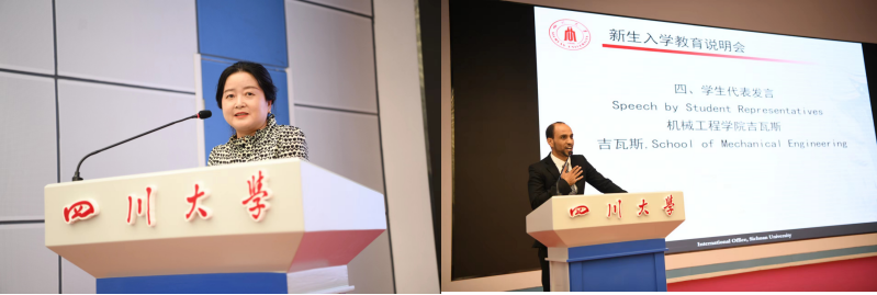 作为新生代表,来自也门的吉瓦斯同学随后发言,讲述了他与成都不解的缘分,并表达了他对川大学习生活的憧憬。
