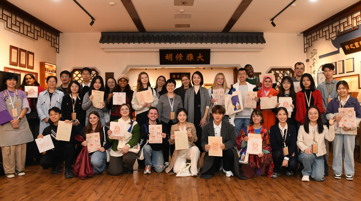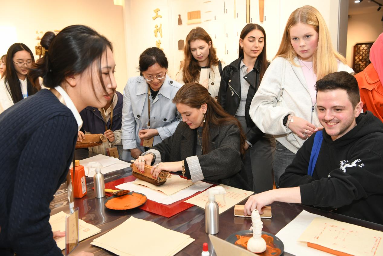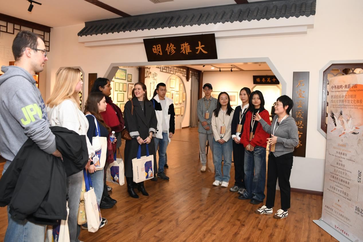 音乐之外,文化的交流同样精彩。合唱团成员们来到文理图书馆三楼,参观了四川大学典籍陈列馆,并在四川省古籍研修实训基地体验了一场别开生面的“中外和鸣·典籍寻踪”中国传统文化体验活动。