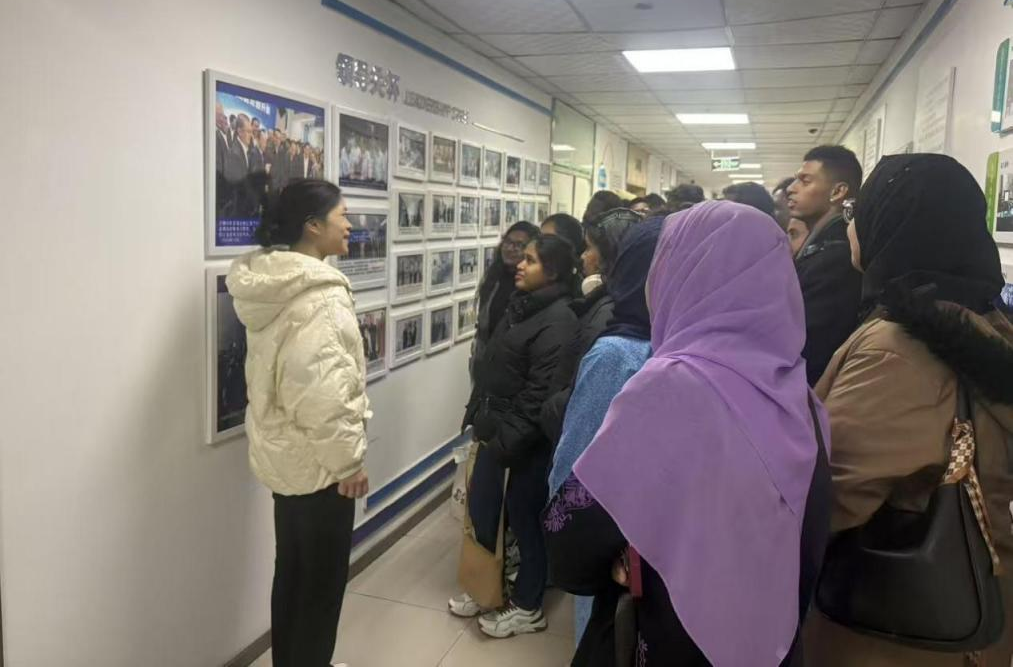 活动伊始,留学生们在研究所工作人员带领下参观了企业文化展厅。讲解员系统介绍了研究所的发展历程、核心使命与创新理念,重点阐述了机构在国家政策支持下的快速发展与社会贡献。通过图文、模型及多媒体展示,同学们对减灾研究所的工作布局与社会价值有了直观的认识。