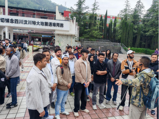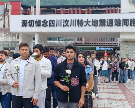 上午同学们从四川大学望江校区出发,前往映秀地震遗址。同学们在漩口中学地震遗址参加了庄重的鲜花缅怀活动,向在地震中遇难的同胞和英勇牺牲的救援人员致以深切哀思。随着讲解员的介绍,同学们深入地了解2008年汶川特大地震的惨烈情景及灾后重建的伟大历程。在倒塌的校舍和重建的家园前,来自巴勒斯坦的留学生MOHAMMAD ISSAM MAHMOUD ALAWAWDEH同学感慨:“走进映秀,在地震遗址我深切感受到生命的脆弱与伟大。虽然旧的校舍倒下了,但在废墟之上建立起的是新的希望。我们要不忘过去,勇敢前行。”MOHAMMAD ISSAM MAHMOUD ALAWAWDEH同学的感言引发了在场许多留学生的共鸣,大家纷纷感慨中国人民在灾难面前展现出的坚韧与团结,并表示这次参观让他们对中国社会的凝聚力和重建能力有了更深刻的认识。