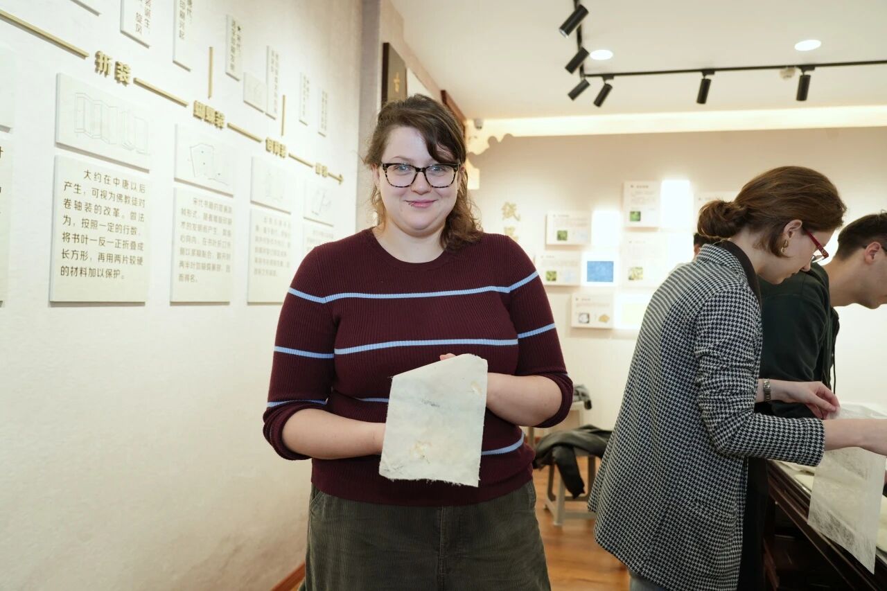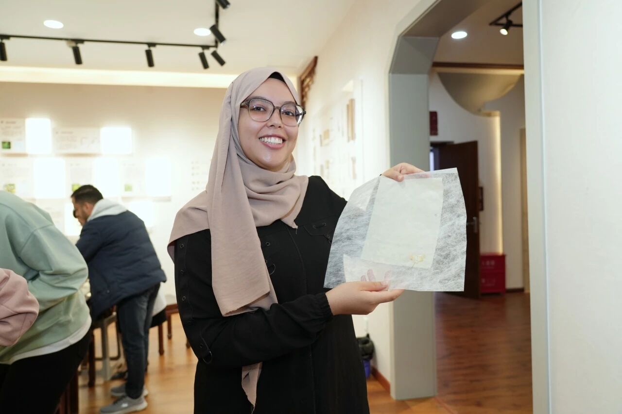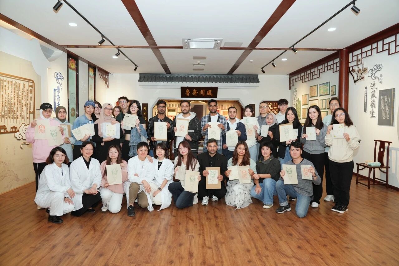 2025年11月7日,时值立冬,寒意初临,四川大学典籍馆内却暖意融融。四川大学2025年“留传经典・蜀韵川大”国际学生特色文化体验项目之“匠心传承:感受指尖上的中国”在此圆满举行。活动由留学生管理办公室资助立项,四川大学图书馆主办,来自东南亚、中东、欧洲等地的20名四川大学留学生齐聚一堂,在图书馆老师的带领下,亲身感受了中国古代“四大发明”之一 ——造纸术的独特魅力。