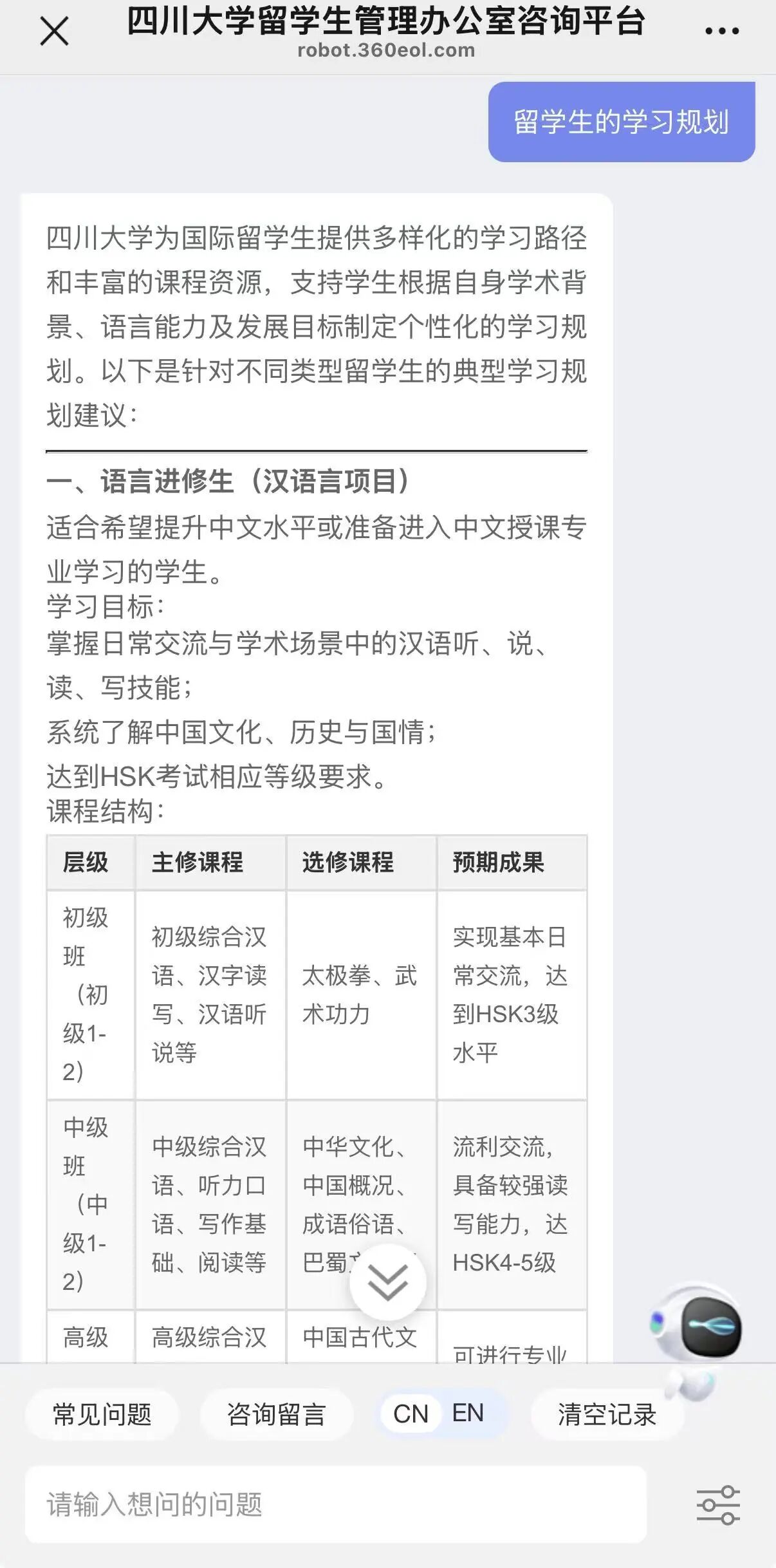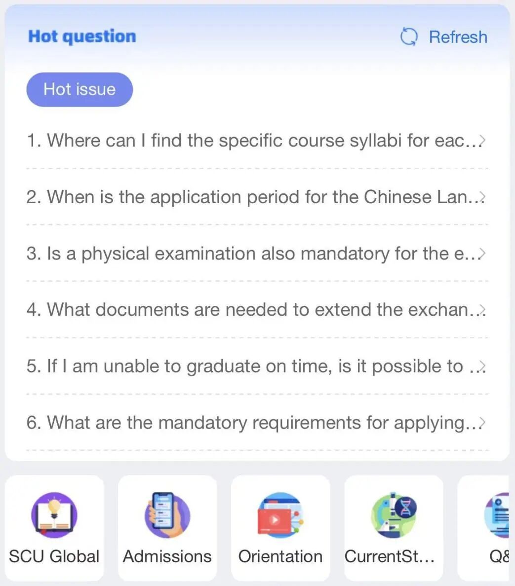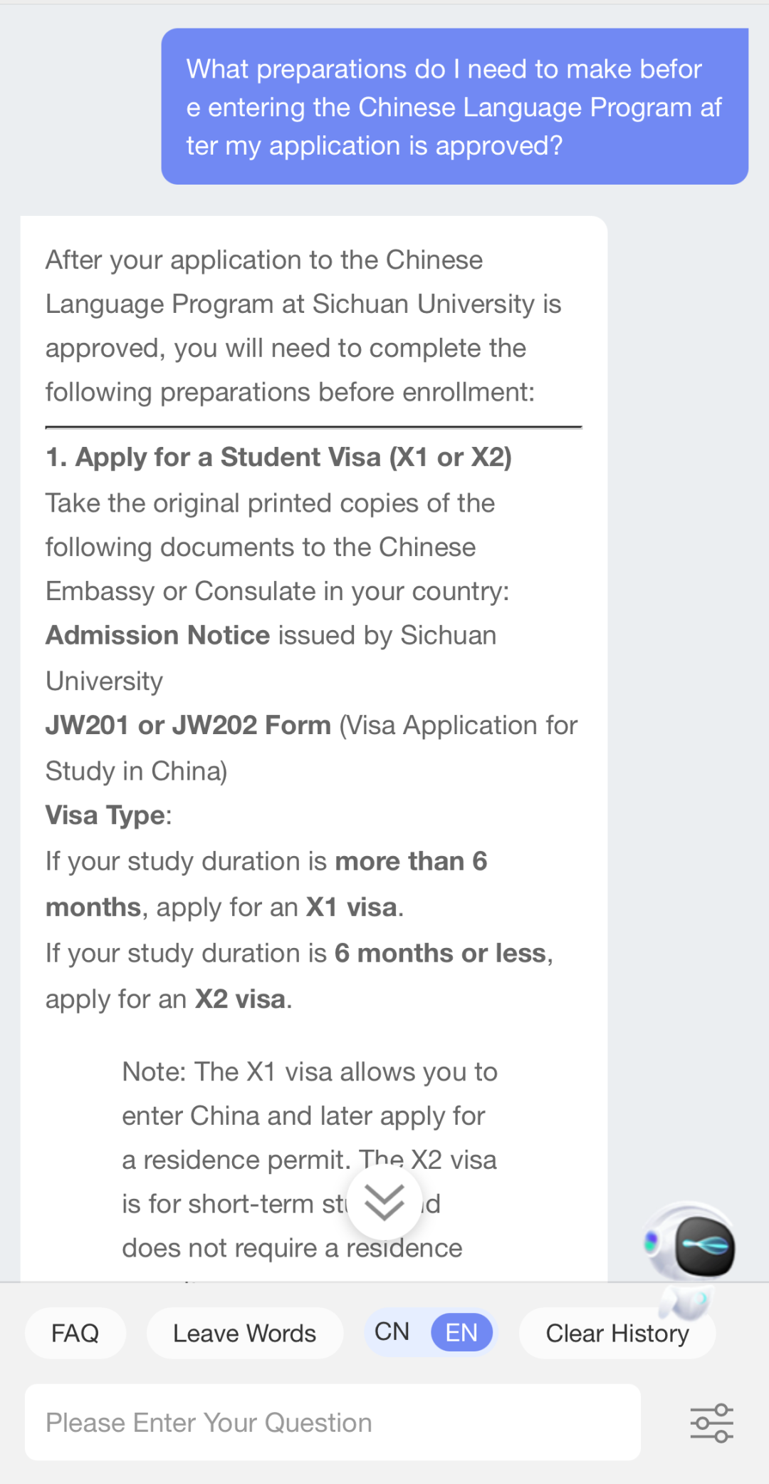 Authoritative and Timely Information: All responses are based on the latest official policies and information released by the Sichuan University International Student Office, ensuring the information you obtain is authentic, reliable, and up-to-date.