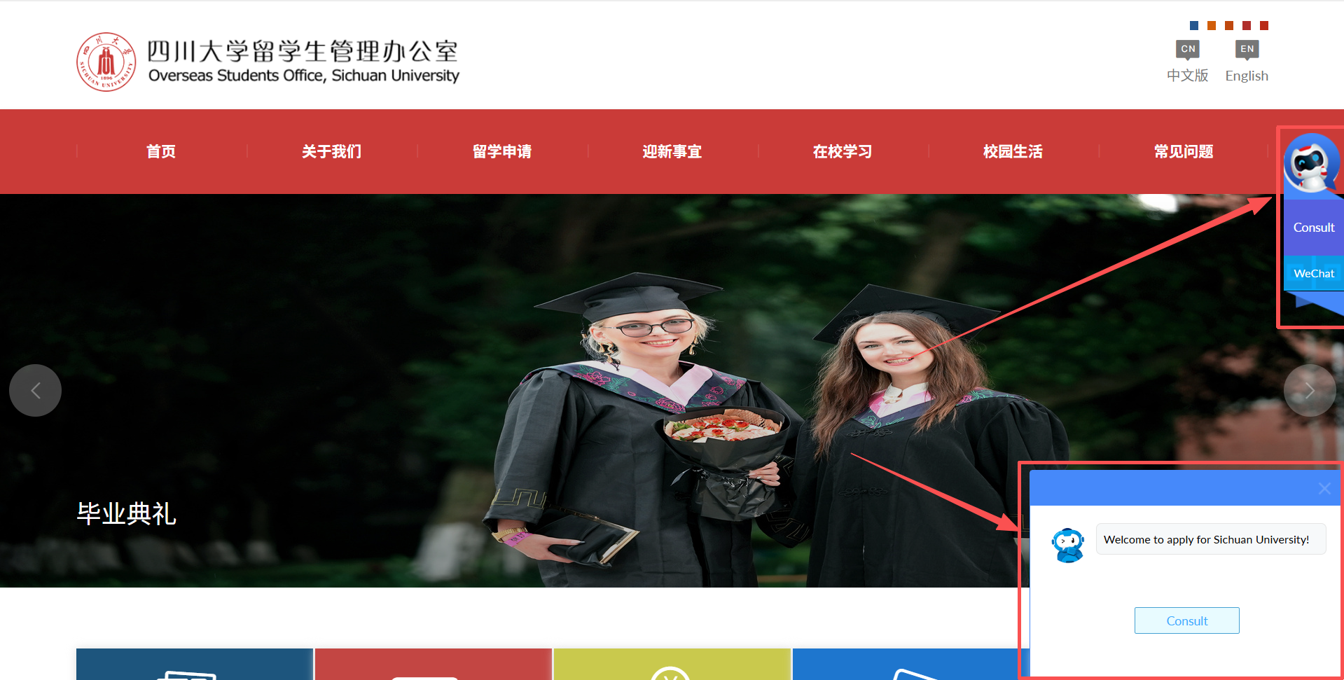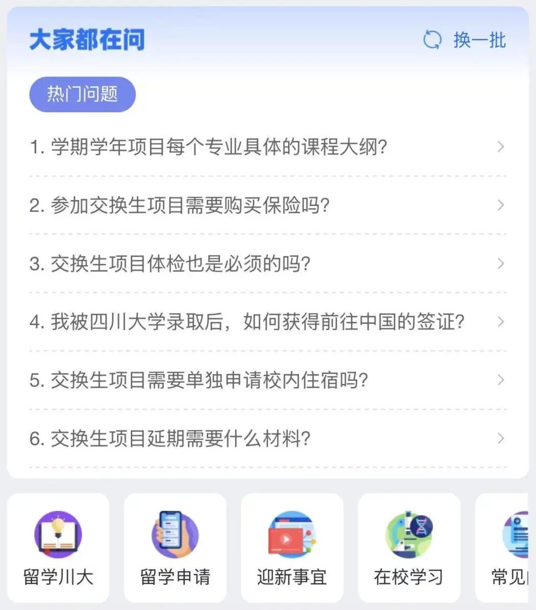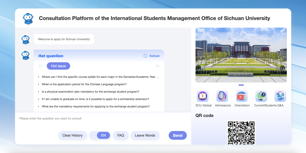 Throughout your application and study journey at Sichuan University, Z-bot offers authoritative and reliable support, helping you easily obtain the information you need.