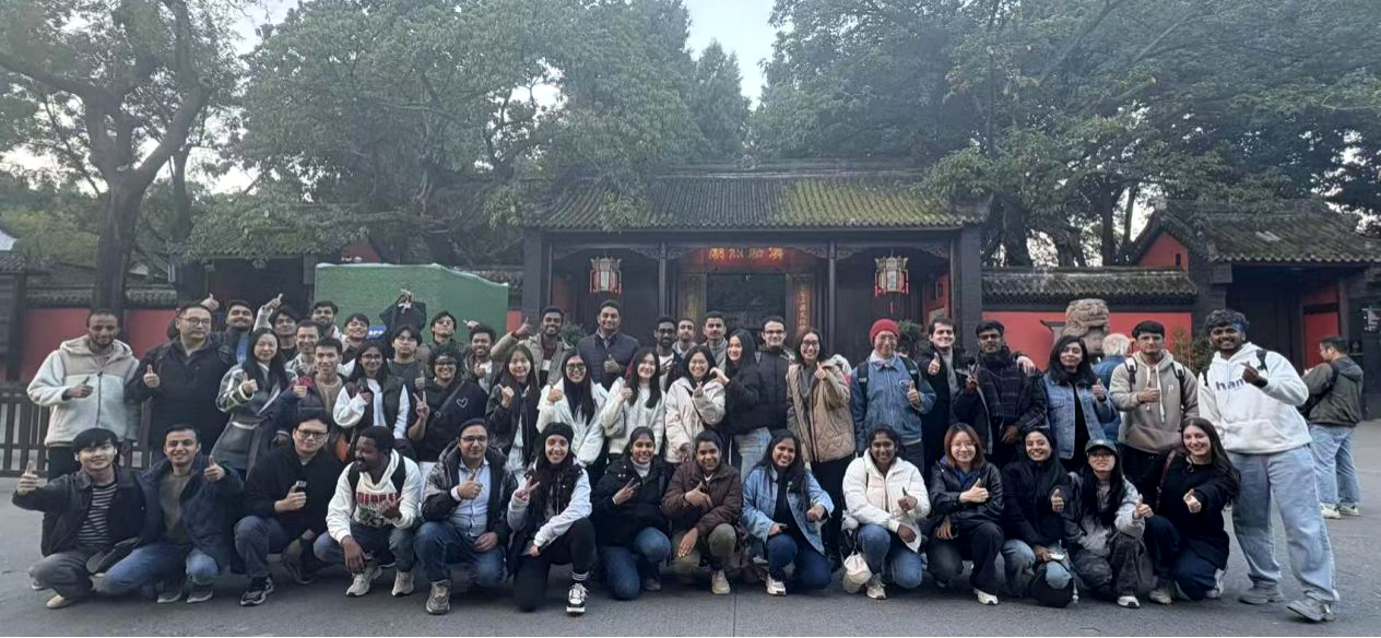 2025年11月20日,商学院组织留学生来到锦里古街,漫步于古朴街巷,品尝地道的四川小吃,观赏精彩的皮影戏和糖画制作。在热闹的市井烟火气中,留学生们直观体验了成都悠久的历史传承与充满活力的民间生态。