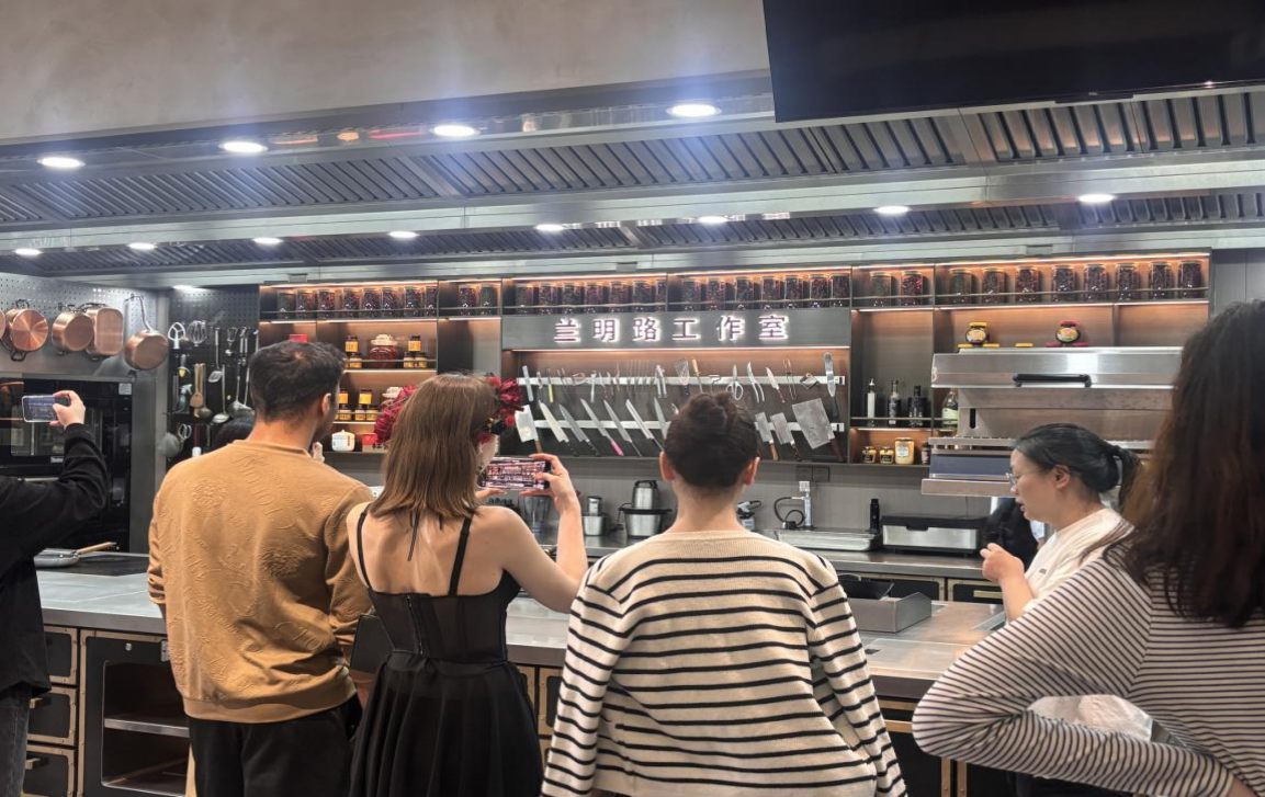 工作室外,由磨刀石铺就的“匠道”隐喻技艺传承的时空维度。穿过“匠道”,工作人员就引导同学们来到二楼专题讲座教室,解锁饮食历史与文化的双重密码。在讲座中,主厨团队以历史与文化的双重视角解析了川菜上河帮、小河帮、下河帮的帮派菜系,并由花椒从被禁止出关到走出国门的故事,以小见大,展现了中国饮食知名度与文化自信的显著提升,其“麻”从生理刺激升华为文化身份标识。之后,主厨们介绍了宫保鸡丁与麻婆豆腐这两道经典菜品的来历。同学们听得津津有味,也对四川的特色菜品与饮食文化符号有了更深刻的理解。